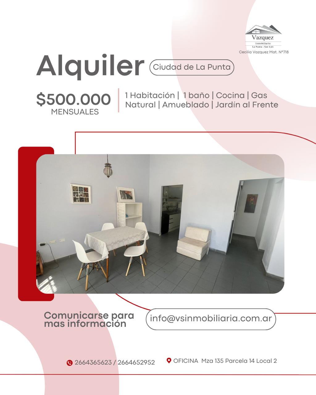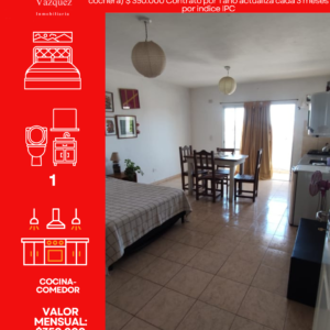 SE ALQUILA Departamento de 1 dormitorio, cocina comedor y baño. Amoblado para grupo fliar de hasta 3 personas $ 500.000 (sin cochera)